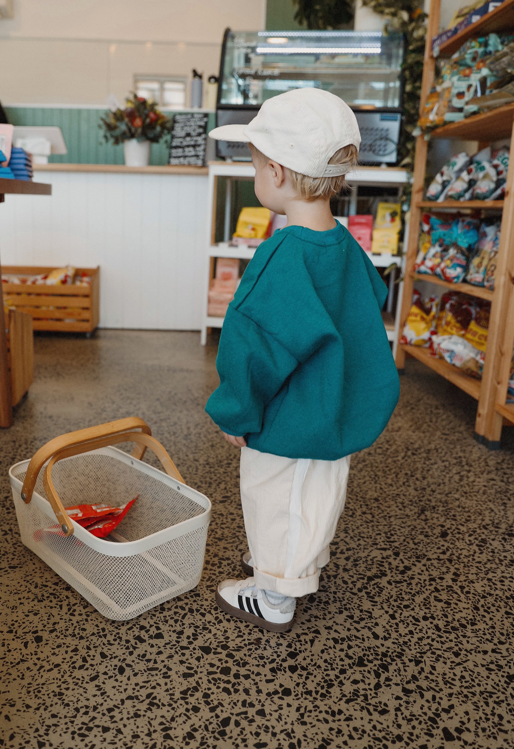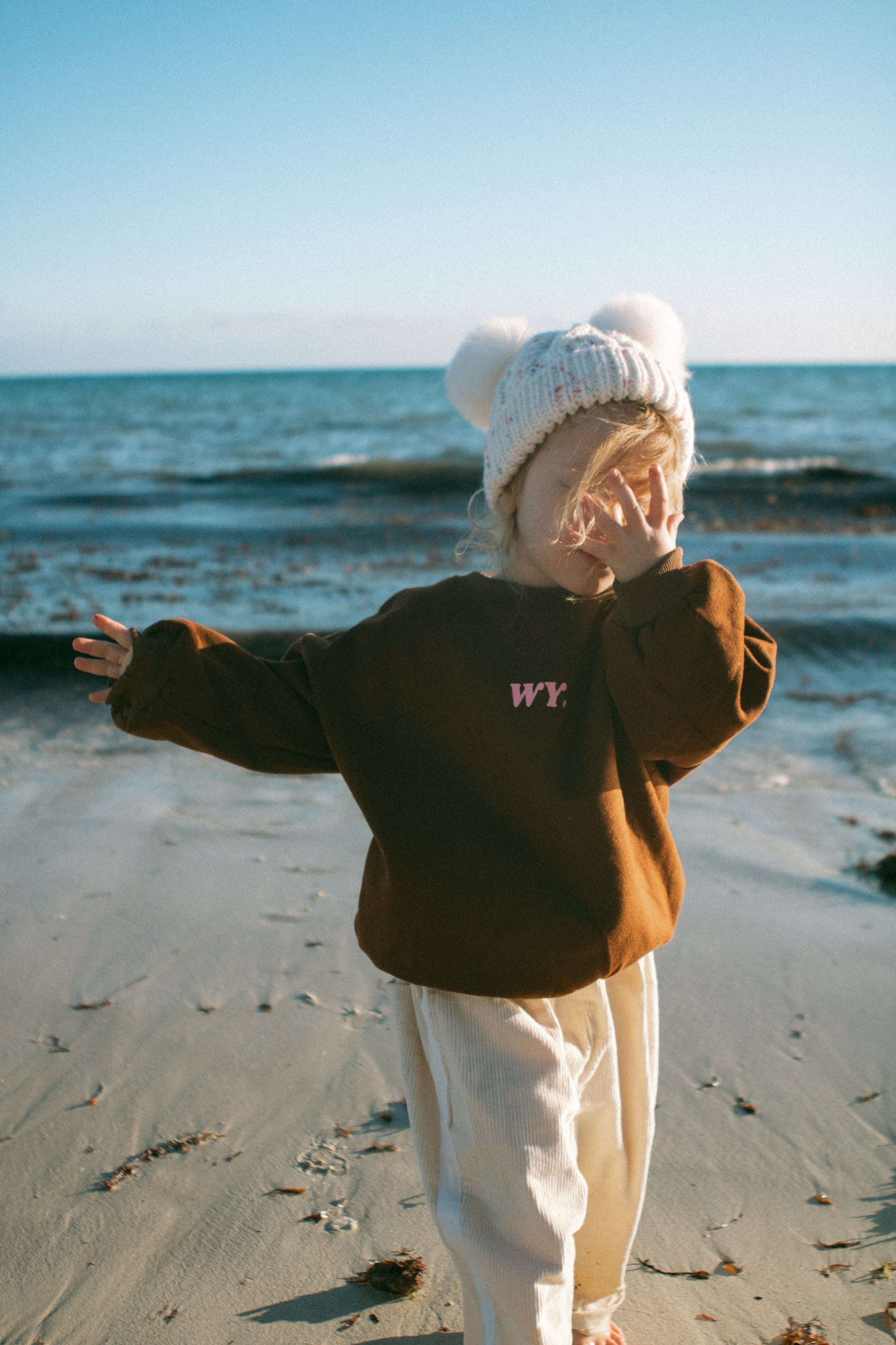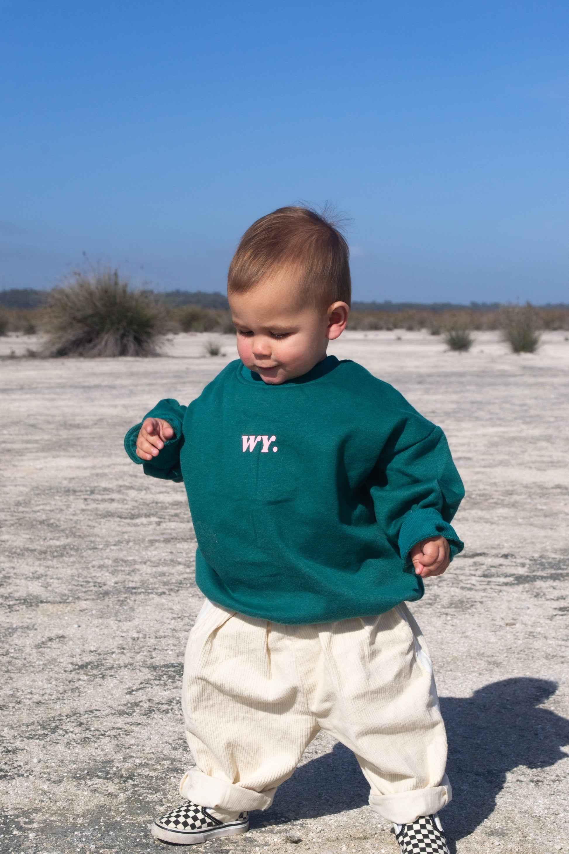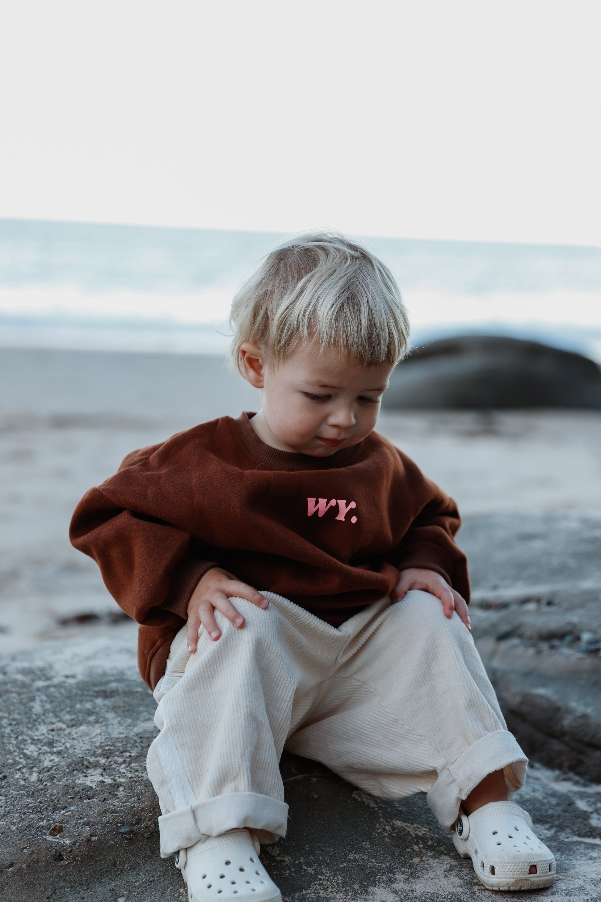 Crafted from soft corduroy in a creamy "Oat Crush", these oversized toddler pants feature sporty racer stripes for a modern look. Designed with extra length, they are best styled rolled up to showcase their relaxed fit and add versatility. The durable fabric and roomy cut ensure comfort and freedom of movement for active little ones.